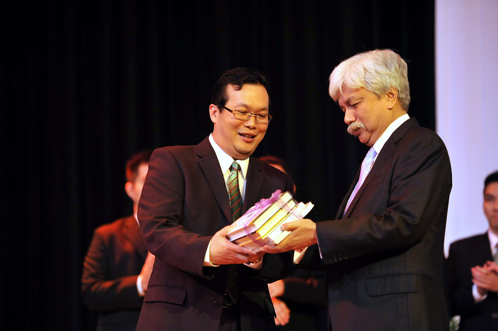 Dato' Leong Kin Mun, the President of the Malaysia Biomass Industries Confederation (MBIC) presenting a memento to His Royal Highness Yang Dipertuan Besar of Negeri Sembilan, Tuanku Muhriz Ibni Almarhum Tuanku Munawir, after the official launch of the MBIC.