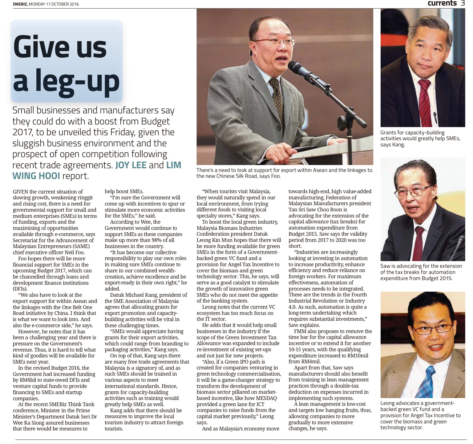 Featured by The Star SMEBiz dated 17 October 2016 on Malaysia Budget 2017.
