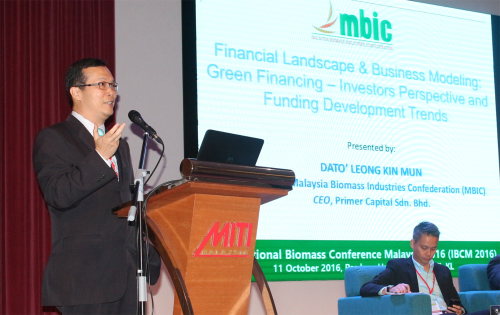 Dato' Leong Kin Mun presenting a paper on "Financial Landscape and Business Modelling for Green Financing" at the International Biomass Conference 2016, organized by the Malaysia Industry Development Authority (MIDA), National Innovation Agency Malaysia (AIM) and Malaysia External Trade Development Corporation (MATRADE).